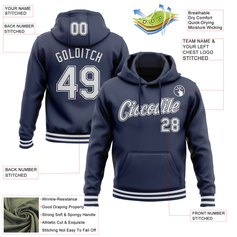 Custom Stitched Navy White Sports Pullover Sweatshirt Hoodie