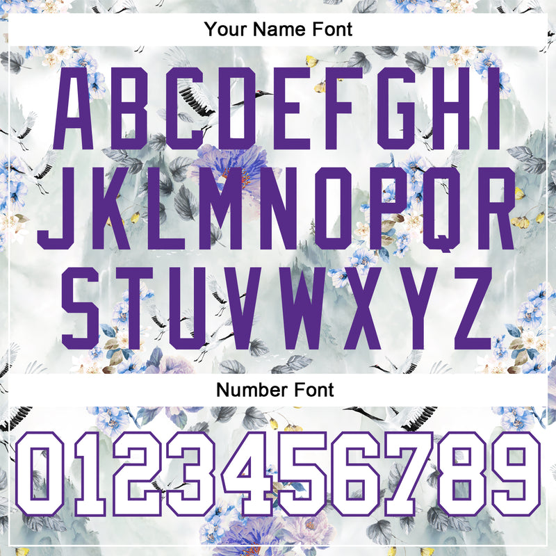 Custom Stitched White Purple 3D Pattern Design Crane And Flower Sports Pullover Sweatshirt Hoodie