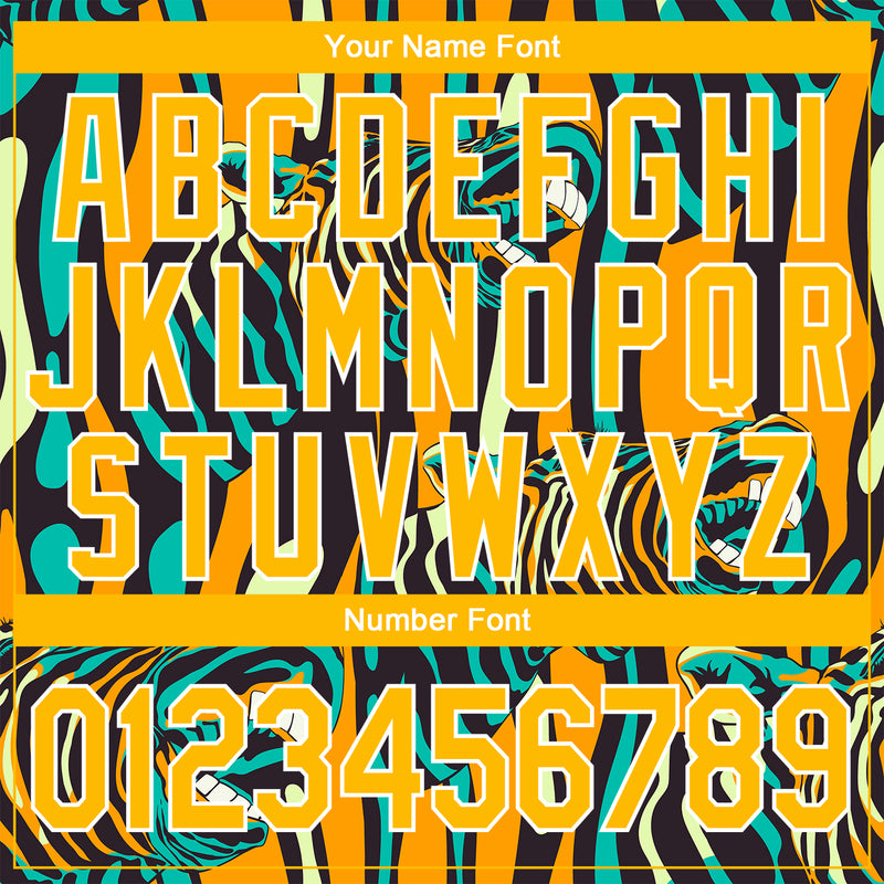Custom Black Black-Old Gold Tiger And Peacock 3D Pattern Design Bomber Full-Snap Varsity Letterman Jacket