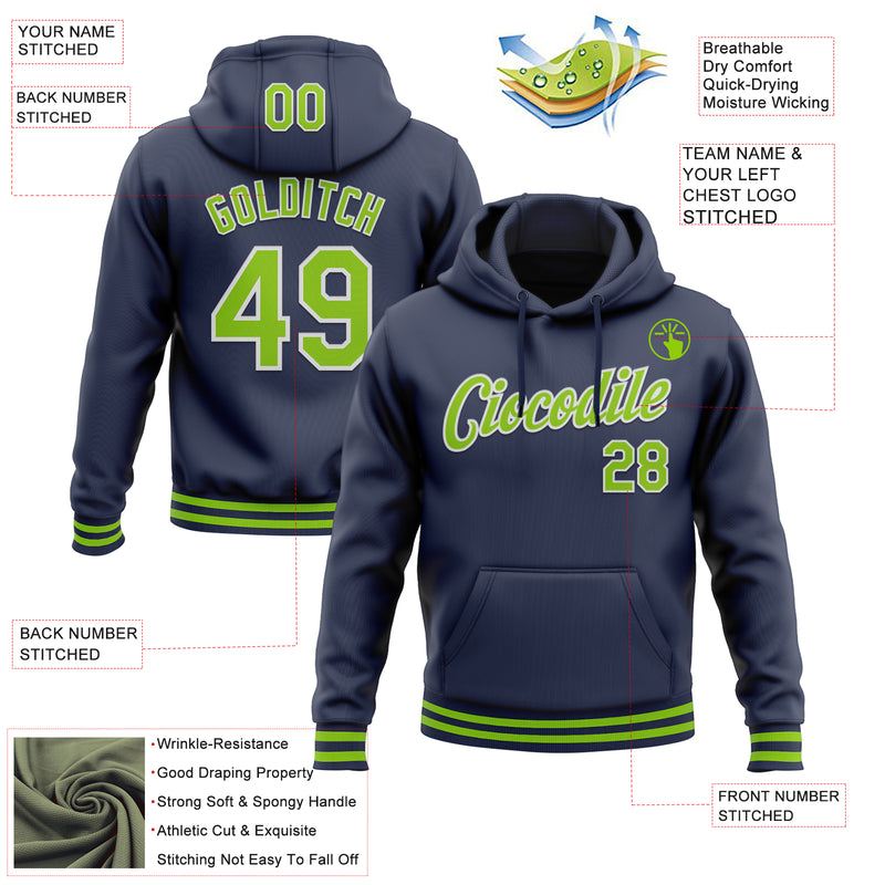 Custom Stitched Navy Neon Green-White Sports Pullover Sweatshirt Hoodie