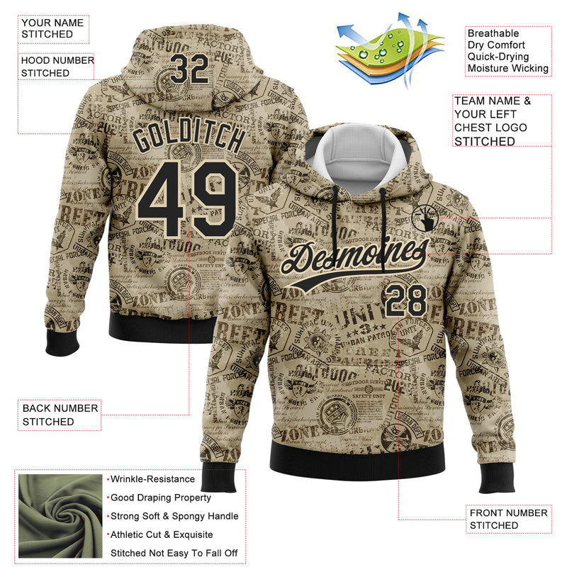 Custom Stitched Olive Black-Cream 3D Military Badge Sports Pullover Sweatshirt Salute To Service Hoodie
