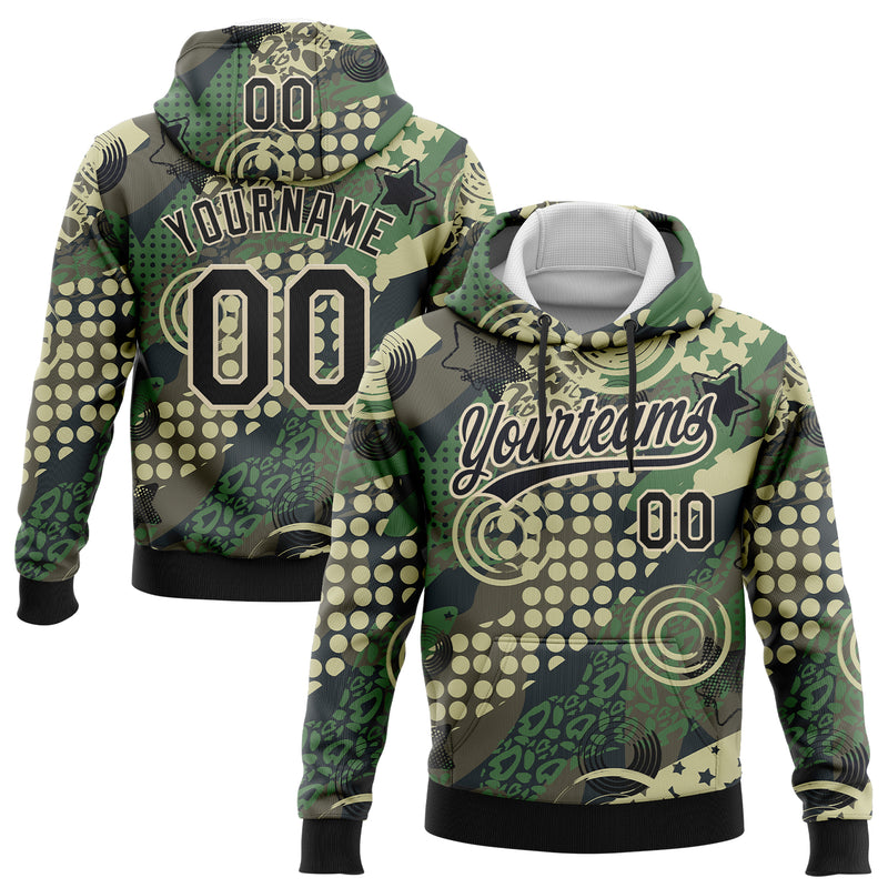 Custom Stitched Camo Black-Cream 3D Dots And Geometric Figures Sports Pullover Sweatshirt Salute To Service Hoodie