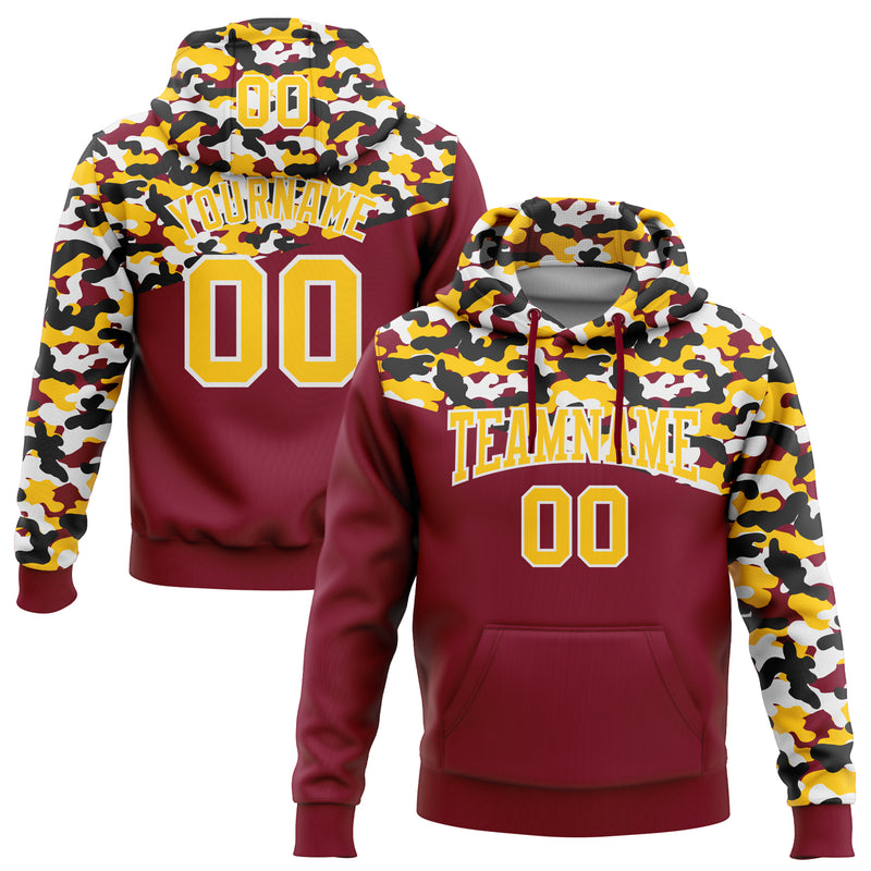 Custom Stitched Camo Yellow Crimson-Black 3D Sports Pullover Sweatshirt Salute To Service Hoodie