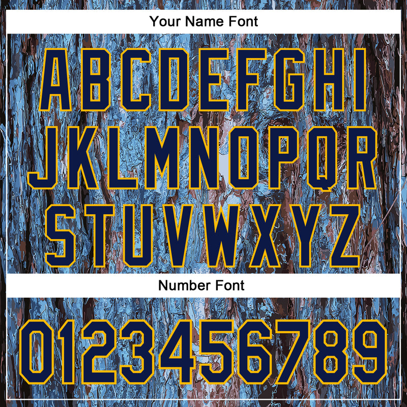 Custom Stitched Blue Navy-Gold 3D Pattern Design Tree Camo Hunting Sports Pullover Sweatshirt Hoodie