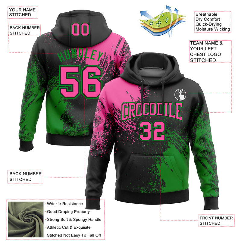 Custom Stitched Black Pink-Grass Green 3D Pattern Design Abstract Brush Stroke Sports Pullover Sweatshirt Hoodie