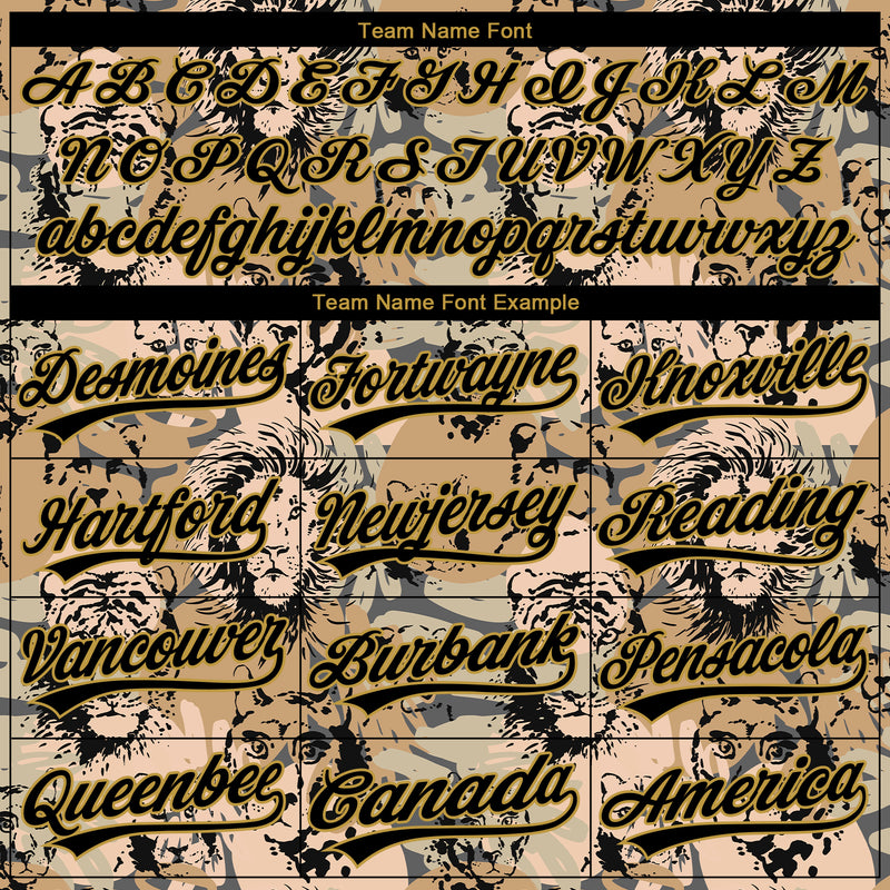Custom Stitched Camo Black-Old Gold 3D Animal Lion And Tiger Sports Pullover Sweatshirt Salute To Service Hoodie