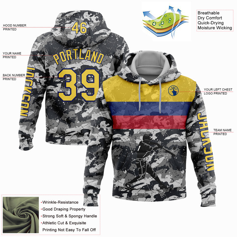 Custom Camo Yellow-US Navy Blue 3D Colombia Colombian Flag Sports Pullover Sweatshirt Salute To Service Hoodie