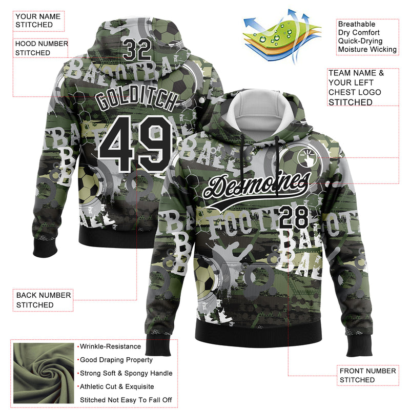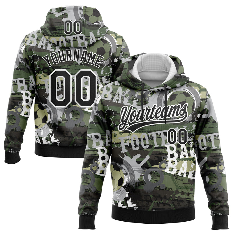 Custom Stitched Camo Black-White 3D Football Sports Pullover Sweatshirt Salute To Service Hoodie