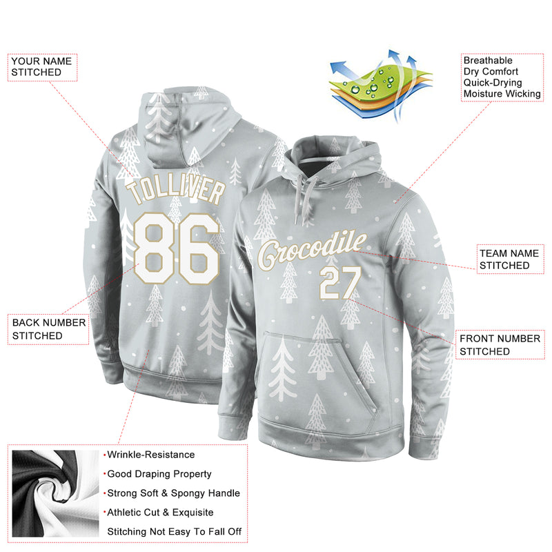 Custom Stitched Gray White-Old Gold Christmas 3D Sports Pullover Sweatshirt Hoodie