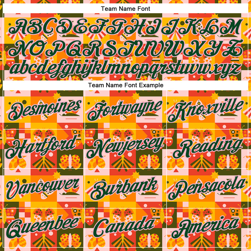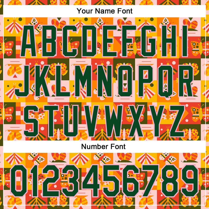 Custom Stitched Bay Orange Green-Light Pink 3D Ambartive Checkered Butterfly Pattern Sports Pullover Sweatshirt Hoodie