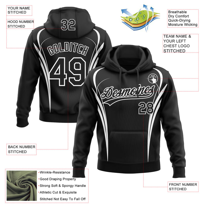 Custom Stitched Black White E-sports Pattern Pullover Sweatshirt Hoodie