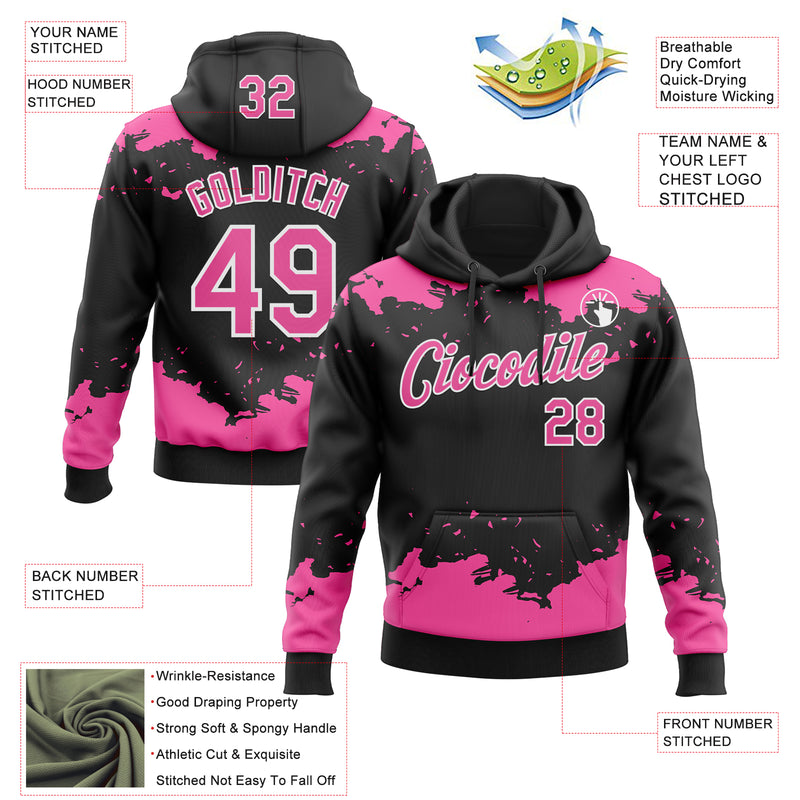 Custom Stitched Black Pink-White Fragment Pattern Sports Pullover Sweatshirt Hoodie