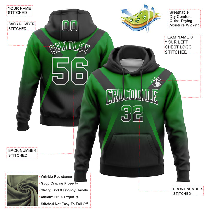 Custom Stitched Grass Green Black-White Fade Fashion Arrow Sports Pullover Sweatshirt Hoodie