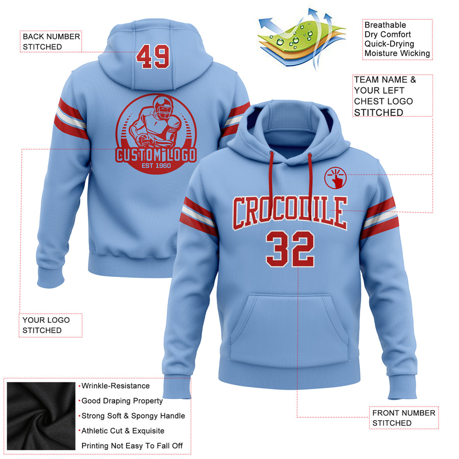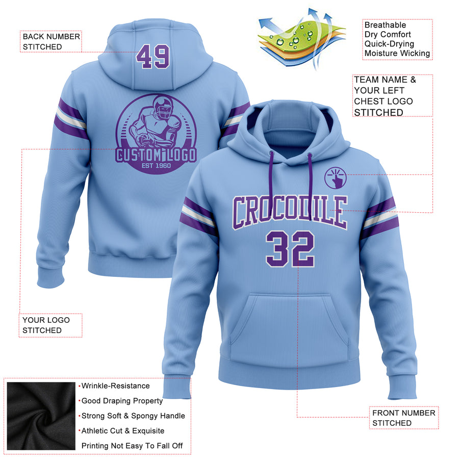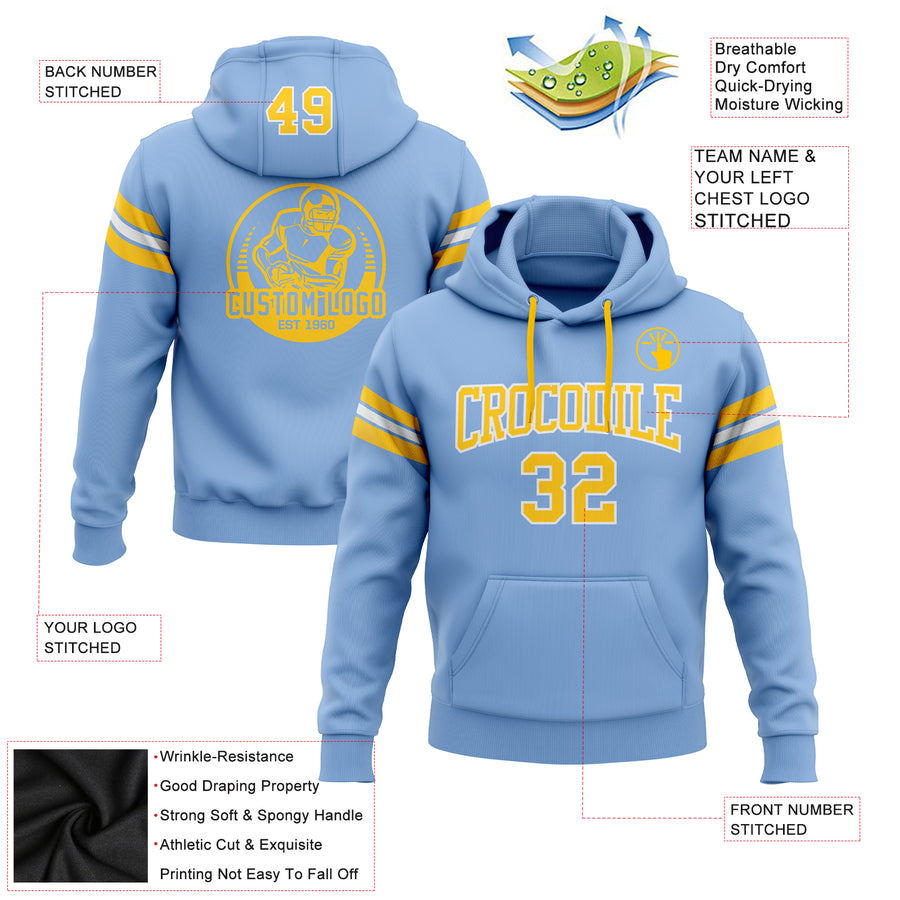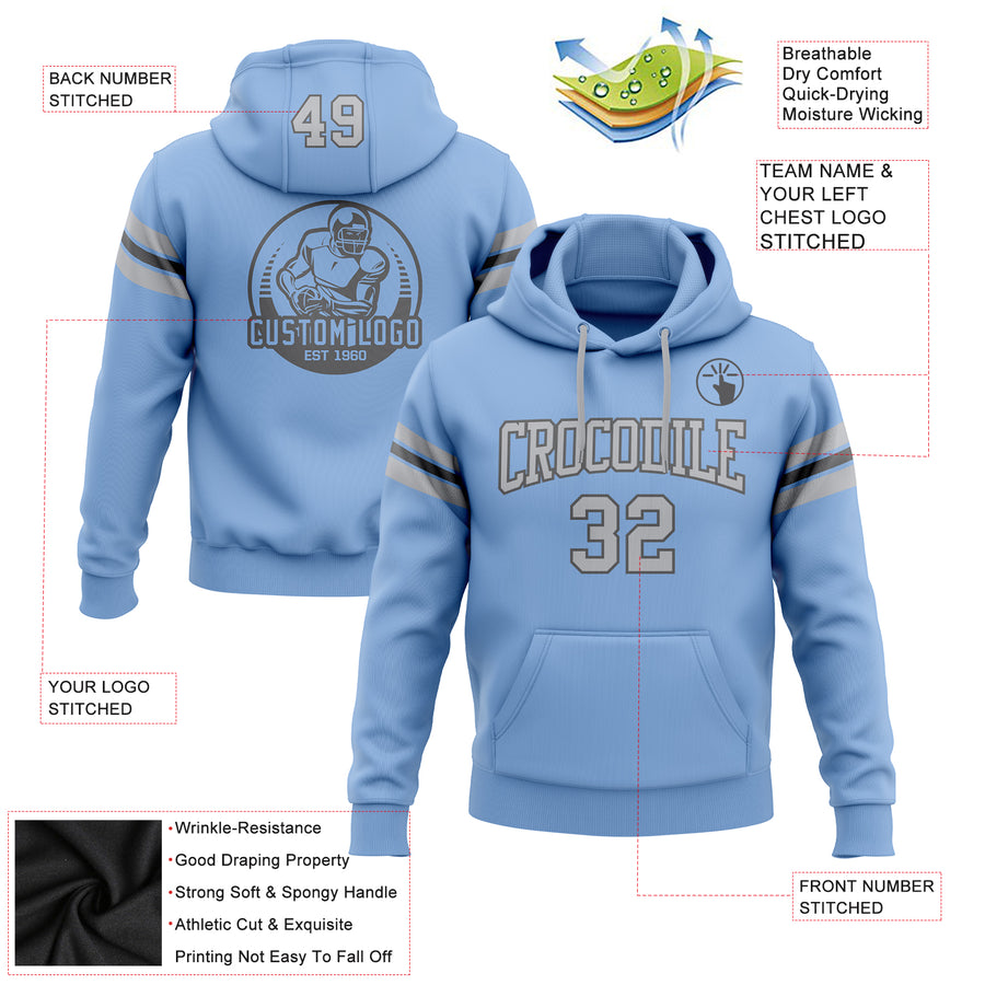 CUSTOM LIGHT BLUE HOODIES SPORTS APPAREL & EMBROIDER LOGO/NAME/ NUMBER
