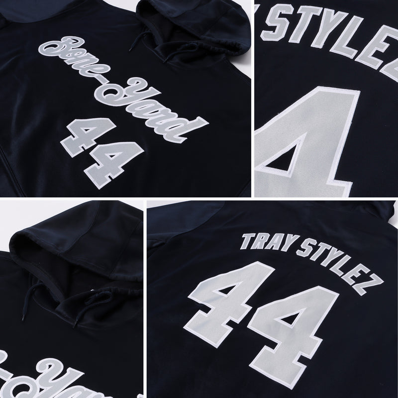 Custom Stitched Navy Gray-White Sports Pullover Sweatshirt Hoodie