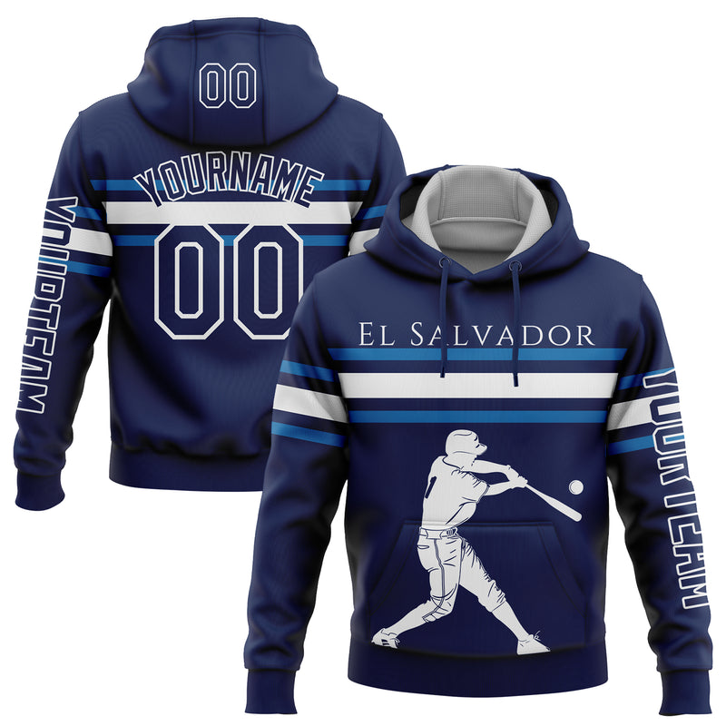 Custom Navy Blue-White 3D El Salvador El Salvadoran Flag Sports Pullover Sweatshirt Hoodie