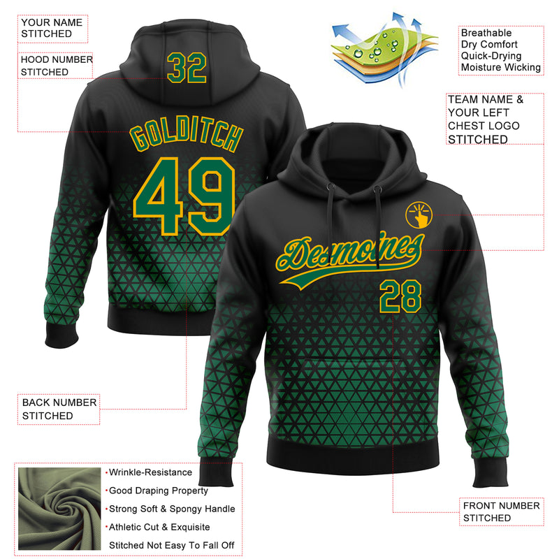 Custom Stitched Black Kelly Green-Gold 3D Pattern Design Geometrico Graph Sports Pullover Sweatshirt Hoodie