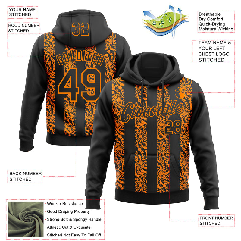 Custom Stitched Black Bay Orange Abstract Shape Pattern Sports Pullover Sweatshirt Hoodie