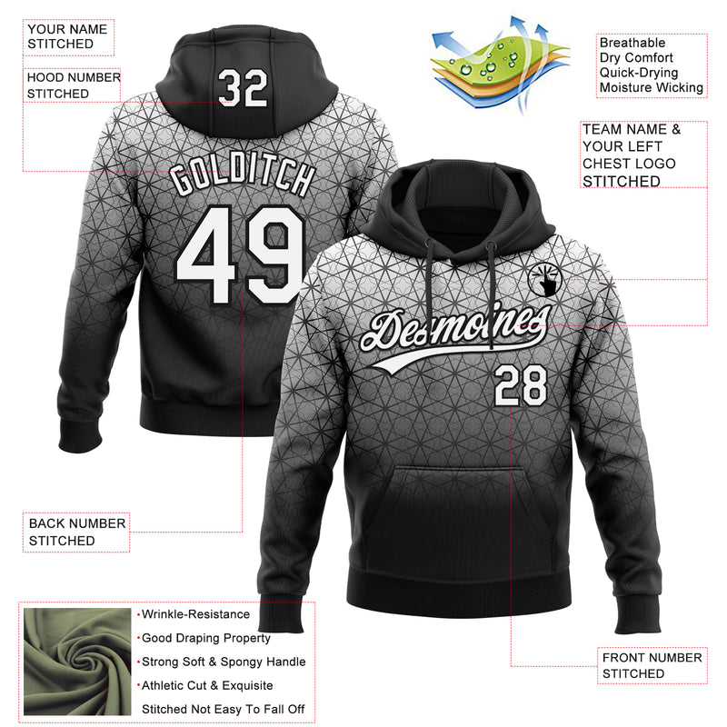 Custom Stitched Black White 3D Pattern Design Gradient Line Sportswear Pullover Sweatshirt Hoodie