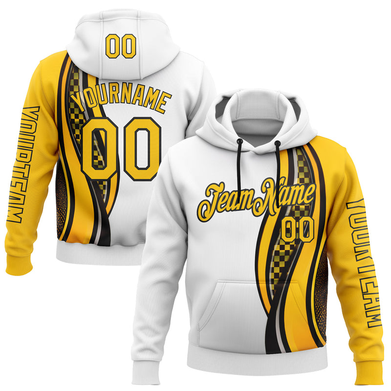 Custom White Yellow-Black 3D Pattern Design Formula Auto Car Racing Motorsport Sports Pullover Sweatshirt Hoodie