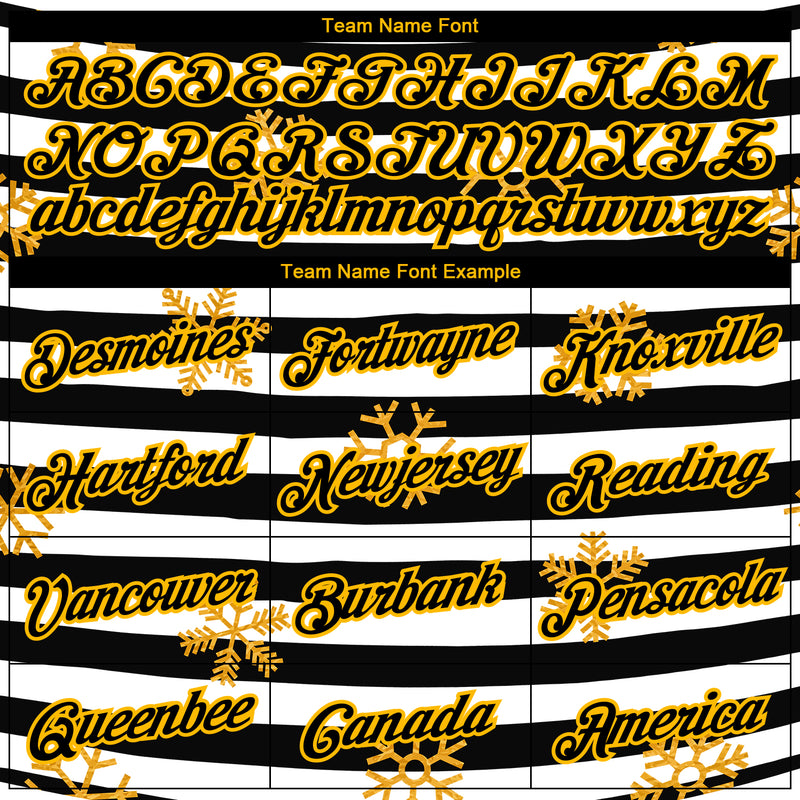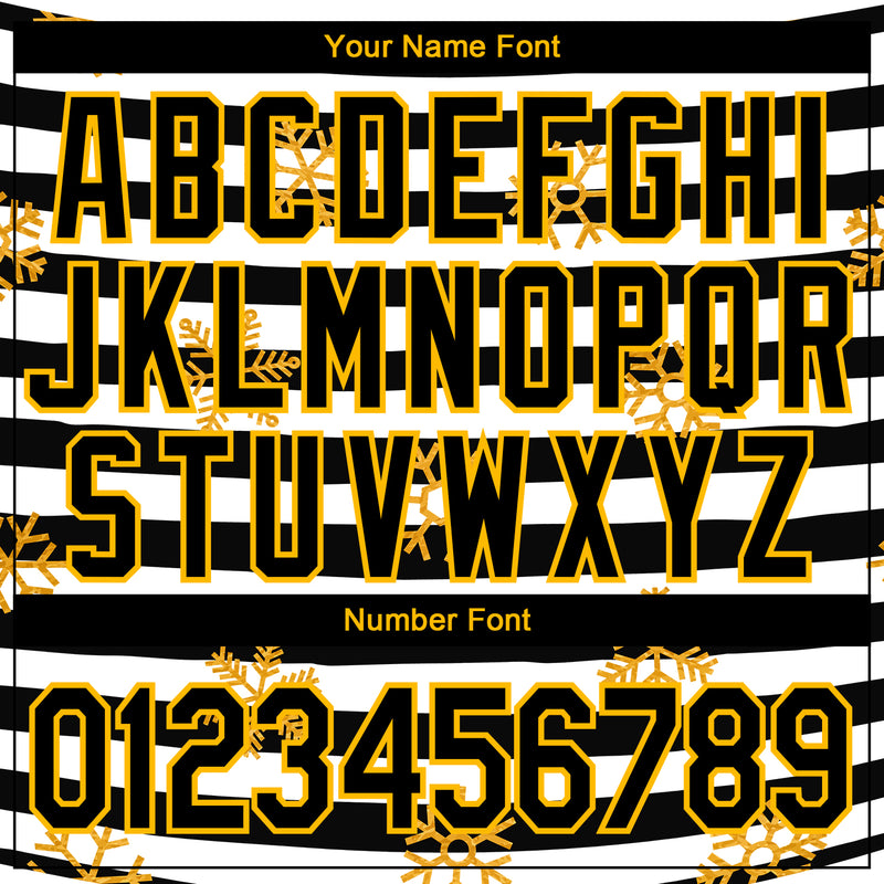 Custom Old Gold Black-White 3D Christmas Hockey Lace Neck Jersey