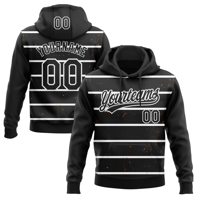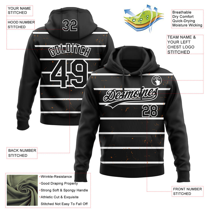 Custom Stitched Black White 3D Pattern Design Line Sportswear Pullover Sweatshirt Hoodie