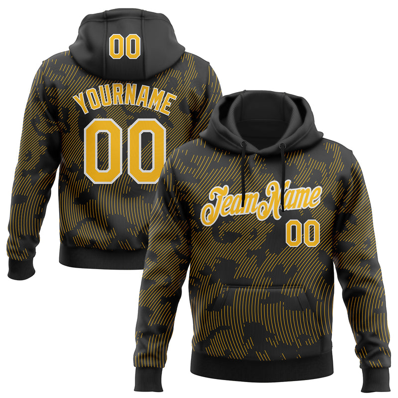 Custom Stitched Black Gold-White Curve Lines Sports Pullover Sweatshirt Hoodie