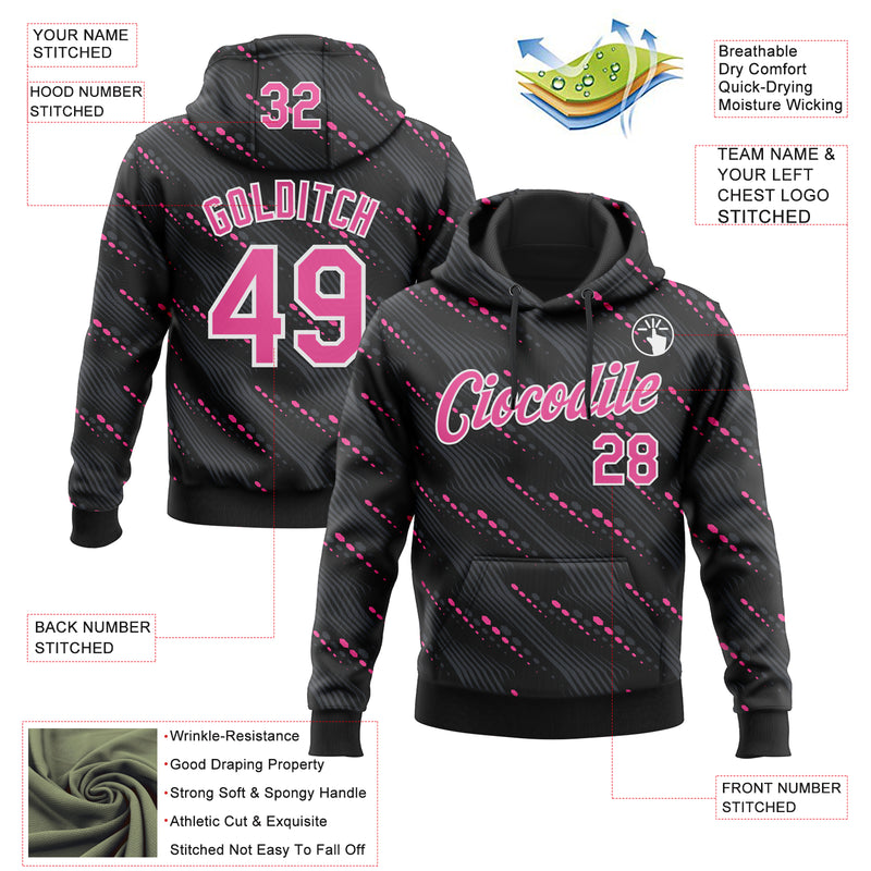 Custom Stitched Black Pink-White Slant Lines Sports Pullover Sweatshirt Hoodie