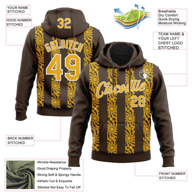 Custom Stitched Brown Gold-White Abstract Shape Pattern Sports Pullover Sweatshirt Hoodie
