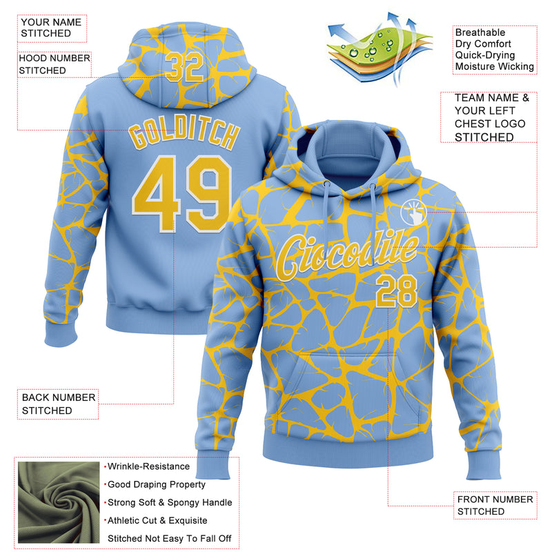 Custom Stitched Light Blue Yellow-White Abstract Network Pattern Sports Pullover Sweatshirt Hoodie