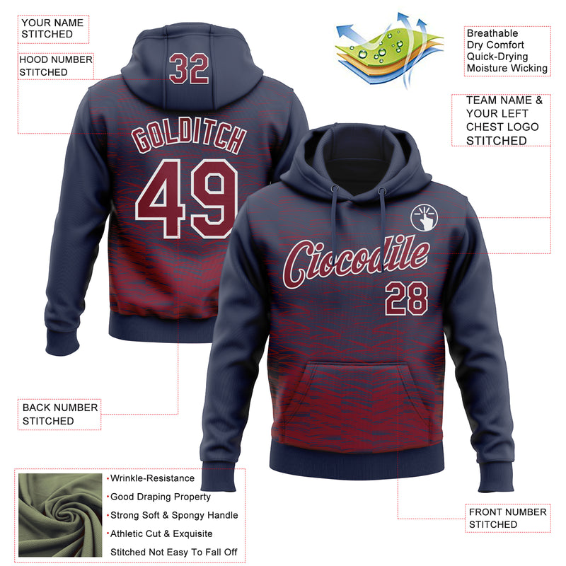 Custom Stitched Navy Crimson-White Line Sports Pullover Sweatshirt Hoodie