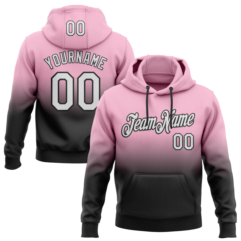 Custom Stitched Light Pink White-Black Fade Fashion Sports Pullover Sweatshirt Hoodie