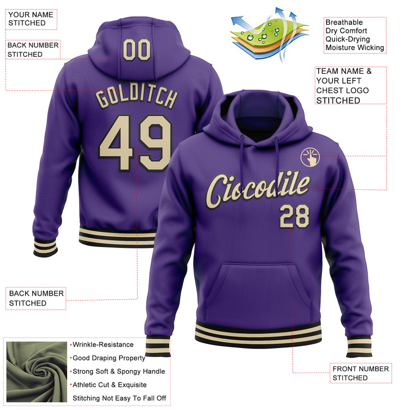 Custom Stitched Purple Cream-Black Sports Pullover Sweatshirt Hoodie