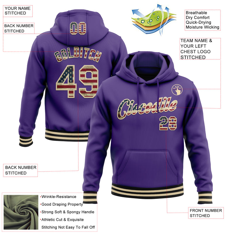Custom Stitched Purple Vintage USA Flag Cream-Black Sports Pullover Sweatshirt Hoodie