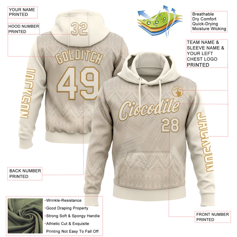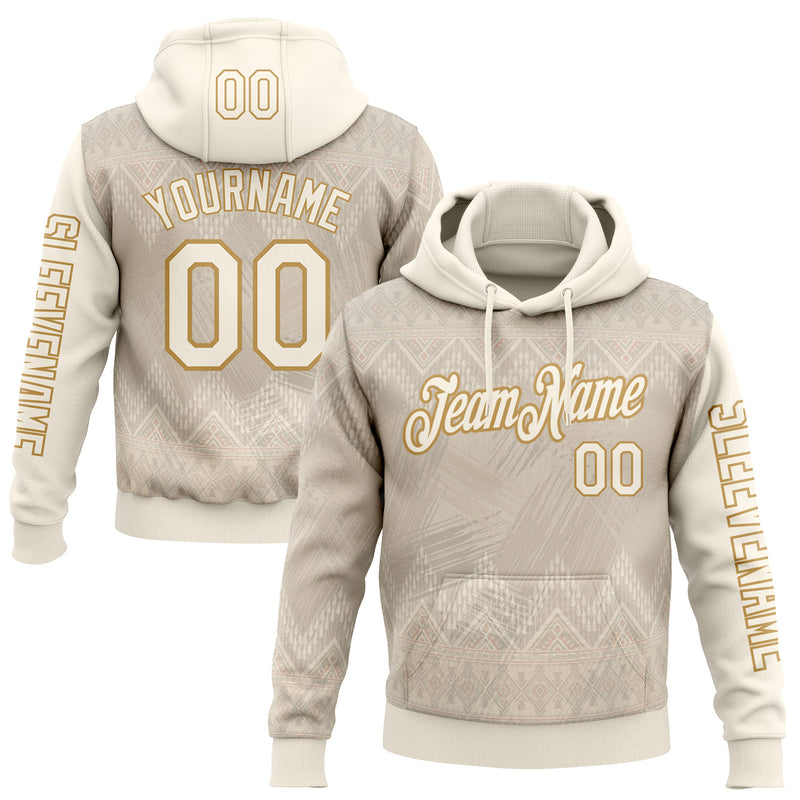 Custom Cream Old Gold 3D Pattern Design Ethnic Tribal Sportswear Pullover Sweatshirt Hoodie