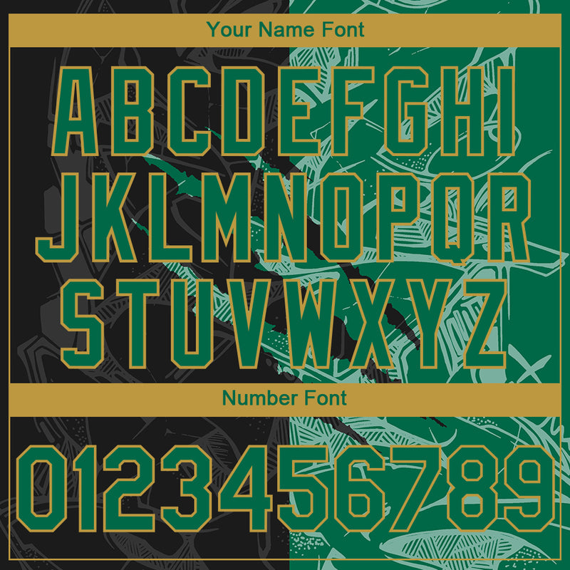 Custom Stitched Graffiti Pattern Black Kelly Green-Old Gold 3D Scratch Sports Pullover Sweatshirt Hoodie