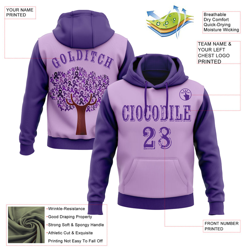 Custom Light Purple Purple 3D Testicular Cancer World Cancer Day Ribbon Support Sports Pullover Sweatshirt Hoodie