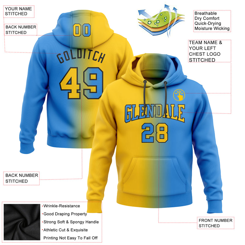 Custom Stitched Powder Blue Yellow-Black Gradient Fashion Sports Pullover Sweatshirt Hoodie