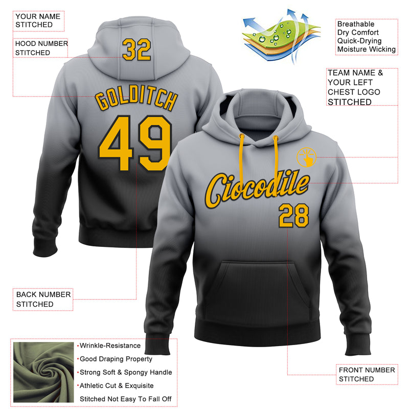 Custom Stitched Gray Gold-Black Fade Fashion Sports Pullover Sweatshirt Hoodie