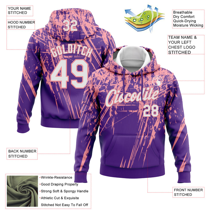Custom Stitched Purple White-Medium Pink 3D Pattern Design Splash Grunge Art Sports Pullover Sweatshirt Hoodie