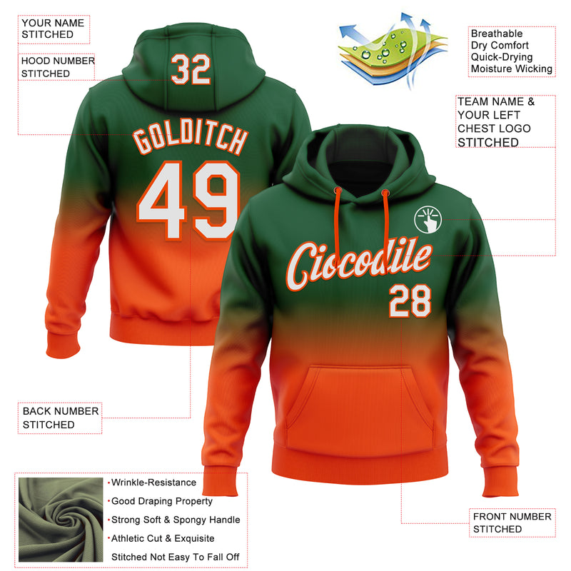 Custom Stitched Green White-Orange Fade Fashion Sports Pullover Sweatshirt Hoodie