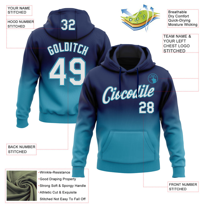Custom Stitched Navy White-Panther Blue Fade Fashion Sports Pullover Sweatshirt Hoodie