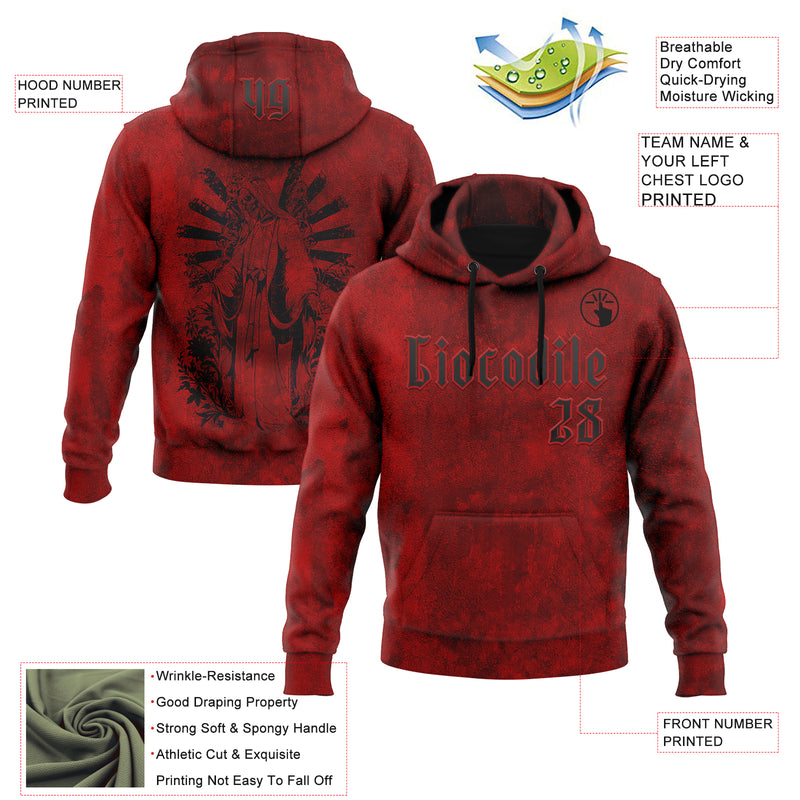 Custom Red Black 3D Skull Gothic Faith Holy Vintage Sports Pullover Sweatshirt Hoodie