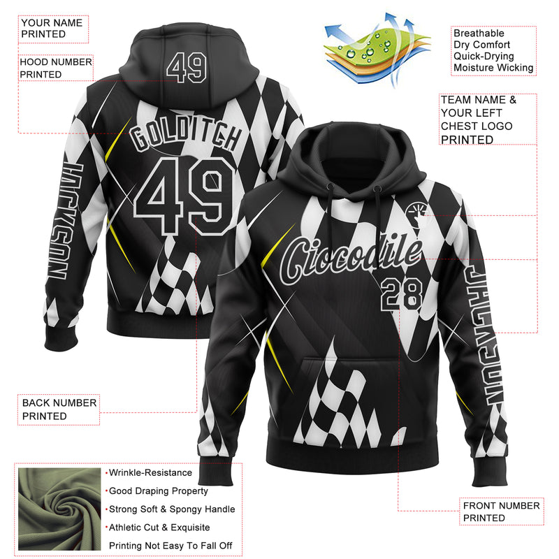Custom Black White 3D Pattern Design Formula Auto Car Racing Motorsport Sports Pullover Sweatshirt Hoodie