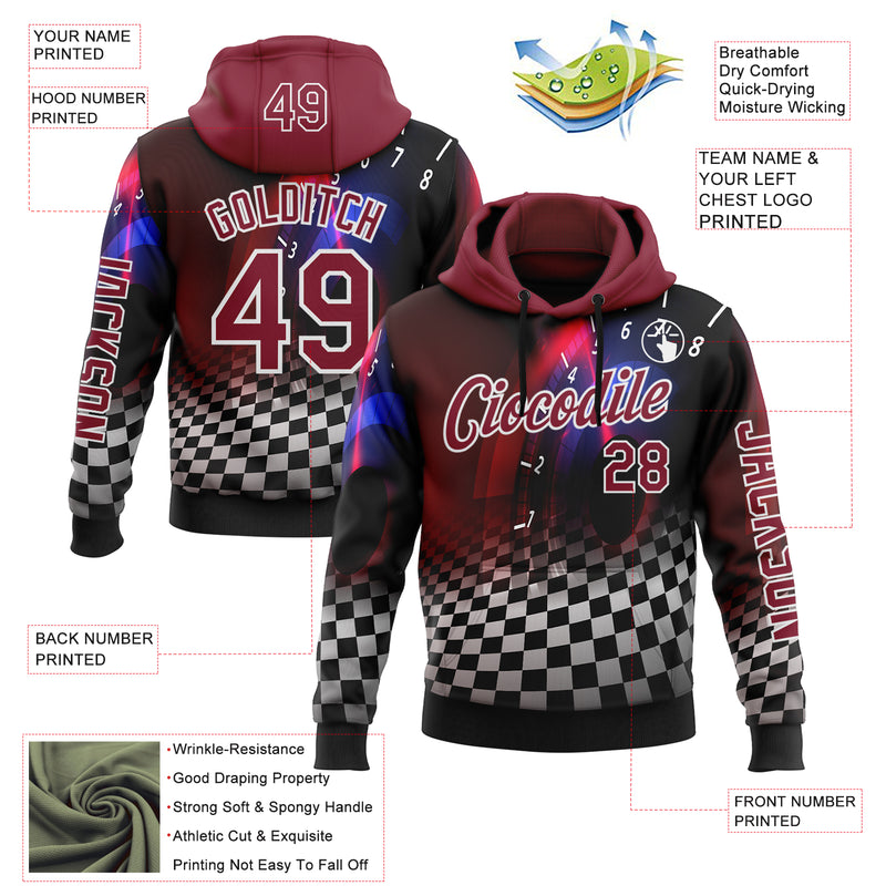 Custom Black Crimson-White 3D Pattern Design Formula Auto Car Racing Motorsport Sports Pullover Sweatshirt Hoodie
