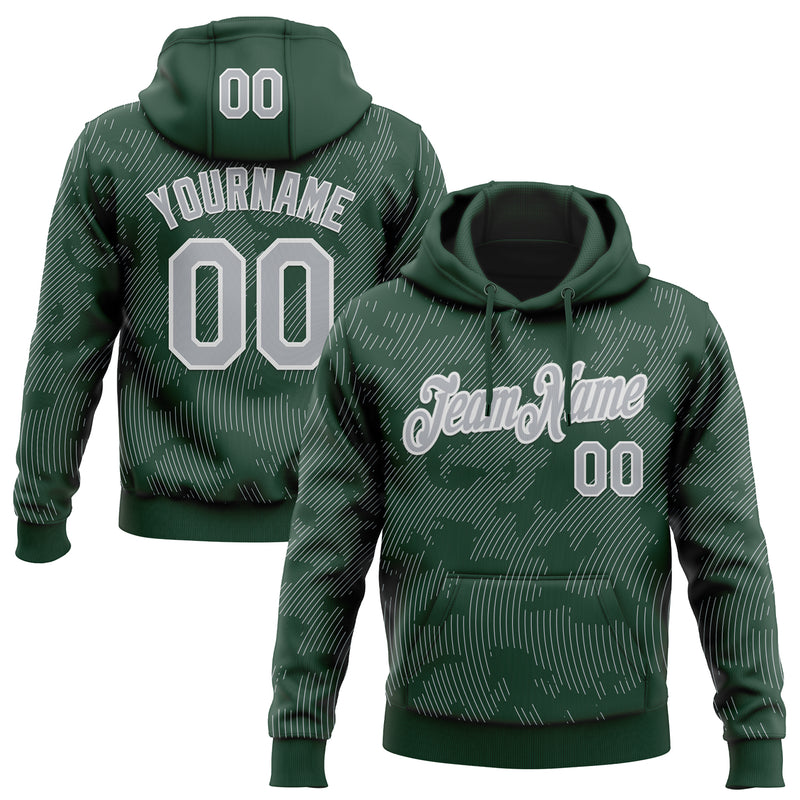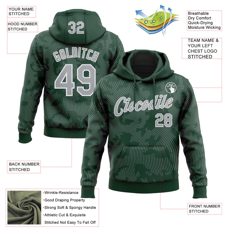 Custom Stitched Green Gray-White Curve Lines Sports Pullover Sweatshirt Hoodie