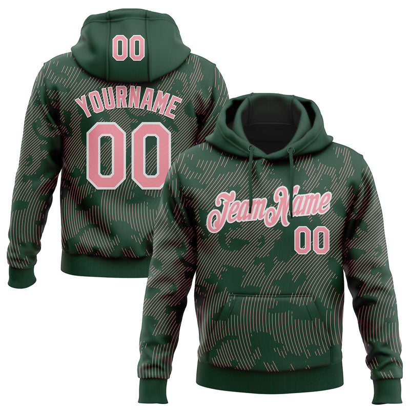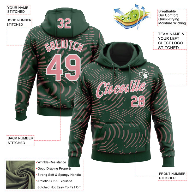 Custom Stitched Green Medium Pink-White Curve Lines Sports Pullover Sweatshirt Hoodie