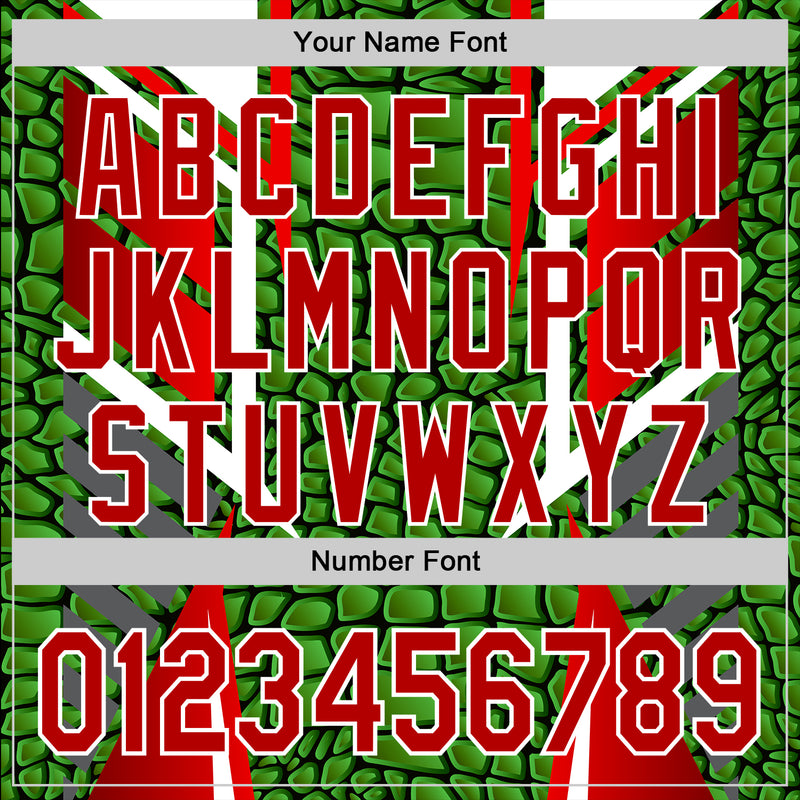 Custom Stitched Green Red-White 3D Pattern Design Crocodile Skin Print Sportswear Pullover Sweatshirt Hoodie