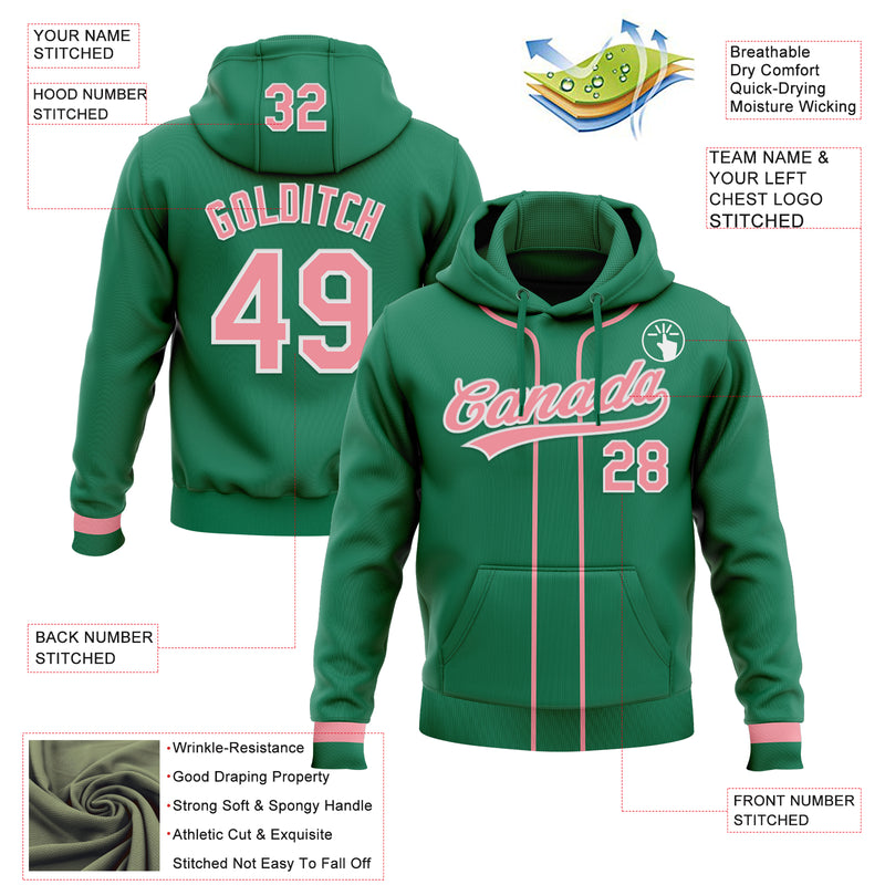 Custom Kelly Green Pullover Sweatshirt Hoodie