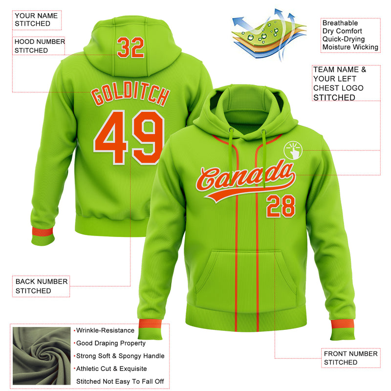 Custom Stitched Neon Green Orange-White Baseball Pullover Sweatshirt Hoodie